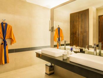 Отель расположен на пляже. Размещение было на первом этаже, сразу перед бассейном. Халаты в номере. Большая ванная комната.