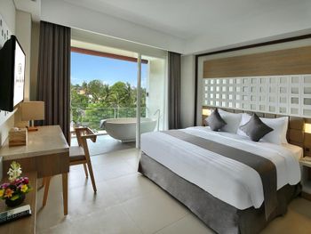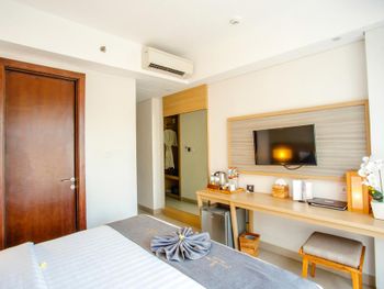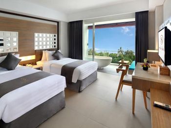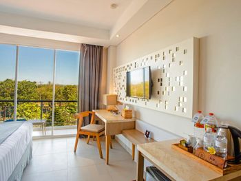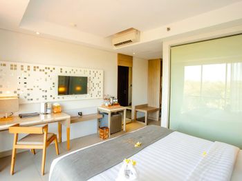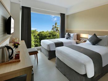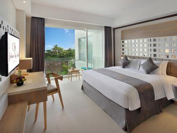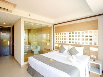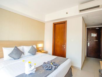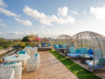 Наш первый отель по прилету , замечательный персонал , хороший бассейн с баром , очень просторный номер и большая кровать . Чудесный ресторан на крыше гостиницы с прекрасным видом и мягкими диванчиками . Через дорогу море и сеть ресторанов на пляже Джимбаран . Есть все что нужно , можете смело брать на несколько дней - не пожалеете . Вернемся сюда однозначно в следующий прилет .