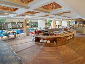 Красивый бассейн. Большое разнообразие на завтрак ( но лично для меня не очень вкусно) Неплохой кофе.