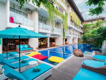 После всех отелей на о.Бали впервые вспомнили о шуме. Заселили в номер 117, очень шумит вентиляция из ресторана. Персонал предложил несколько других номеров на выбор. Переселились на 3 этаж, там только шум от кондиционера, уже неплохо. Бесплатная вода в номере воняет - пить не смогли. Пили платную.