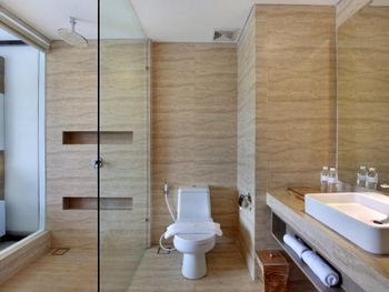 Отвратительный запах в ванной. Можно привыкнуть, но не сразу. Вообще, неприятный запах в номерах частая проблема балийских отелей. В одном из отелей Куты не помогла смена номеров, пришлось съехать. И это не я такой "парфюмер", наша компания из четырех человек единогласно решила, что еще сутки этой вони мы не выдержим. Так что если в коментах жалуются на запах - обратите на это внимание.
