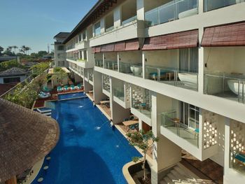 Курортный спа-отель Jimbaran Bay Beach имеет открытый бассейн с баром, к которому можно подплыть. В баре на крыше отеля можно приобрести коктейли и полюбоваться видом моря. Повсеместно доступен бесплатный Wi-Fi. Парковка на территории бесплатная. В пешей доступности находятся рестораны поселка Джимбарана, в которых готовят морепродукты.