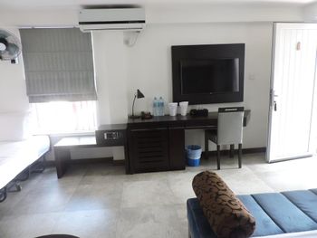 Хорошее расположение, недалеко улица с кафе и магазинами , бассейн на крыше , не много народу и кондиционер с вентилятором есть, персонал отзывчивый и фрукты нам нарезали всегда, которые на рынке брали, все супер Много бурундучков , поели ночью фрукты на балконе )