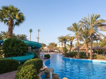 Большая и довольно бестолковая территория. Чтобы попасть на улицу с магазинами, нужно сделать большой крюк, выйти через основной вход а потом минут 10-15 идти вдоль забора, а напрямую все было закрыто. Всего 1 выход на пляж. Нужно обойти всю территорию отеля и только потом попадёшь на пляж. при спуске очень много ступеней. лежаки надо занимать заранее, после завтрака все уже занято. В номере подтекала ванная. При отьезде (мы уезжали ночью) даже не помогли довезти вещи до выхода из отеля, хотя от ресепшена до выхода довольно далеко и при въезде нами в отель, подвозили на электрокаре. В баре около бассейна довольно грязно, столы не убирают. Пляжная зона неплохо оформлена, есть уютные обособленные уголки с лежаками на 4-12 мест. На пляже расположен бар, в которым обслуживает очень приветливый и дружелюбный бармен. Плавали направо вдоль рифа к другим отелям - большое разнообразие рыб. Было день рождение- в номер принесли кусочек торта. Мелочи, но все равно приятно (хотя в Хургаде приносили целый торт). на ресепшене отзывчивые ребята. засели оперативно, дали А- ля карт в итальянский ресторан (хотя в отеле жили всего 3 дня). В итальянском ресторане предложили оформить стол на день рождение, шарики и пр. Мы не стали, но у других было оформлено неплохо. меню и еда оказались так себе, можно и не ходить. Заказать можно было или салат или суп, пиццу или второе. В итоге на двоих принесли 1 салат, 1 суп и маленькую пиццу. Рыбу которую заказывали не принесли. Обслуживание там оставляет желать лучшего. Кстати в этом отеле в барах на все включено нет бутылочного пива (в отличие от др. отелей), только разливное.