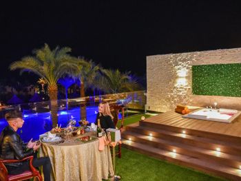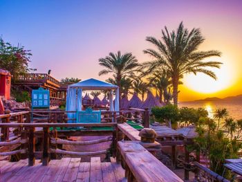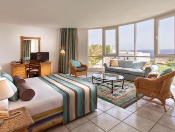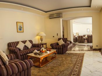 При заселении на ресепшен, узнав что мы бронировали через букинг, нам одели золотые браслеты, не обьяснив привилегии. Попросили доплату в размере 30 дол за сутки, по тому, что хотят предложить нам лучший номер, чем мы бронировали. Цену снизили до 20 дол за ночь за наличку - мы отказались, зная что букинг и так повысил категорию номера. Пошли пообедали, очень настойчиво нам это навязывали, получив жесткий отказ все же заселили нас без дополнительных плат. Пришли к гест рилейшен, спросили что положено - оказывается отдельная столовая, халат и тапки. Халат принесли без пояса, ответив что так модно. В итоге пояс получили через 2 дня. Уборщик в номере старается, но как грязно было, так и есть, постоянно просьба добавить положенные полотенца. Номер плохо проветривается, вытяжка в ванной не работает, сыро, белье не сохнет. В столовой еды много, но она не вкусная. Тажин с морепродуктами - только испортили продукты. Детские стульчики ужасные, грязные старые. Видели огромного таракана в вип зале, работник убил его и отопнул. Мы успели сфоткать. Анимации вообще можно сказать нет, детской мини диско, дети сами пляшут, взрослая - продажа дискотек и экскурсий. Очень неудобный пляж, он сложный, много лестниц. Шезлонгов не хватает, занимали места в 6 утра. С детьми вообще там делать нечего. На пляже есть кафе, только напитки, закусок вообще нет, очень не удобно, учитывая удаленность от ресторана. Туалет жуткий на пляже. Удаленность отеля от цивилизации, рядом нет магазинов и аптек, магазин в отеле дорогой, ближайший 5 км пешком. Персонала не хватает, привести в порядок отель не могут. Территория огромная, но толку нет, много мостиков и переходов. Бассейны холодные, даже детские. Самый дорогой массаж, 35 евро за сеанс, хотя везде 25 дол. Отель утратил былое величие(
