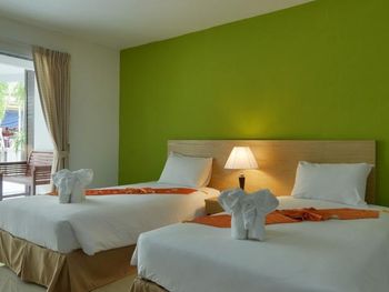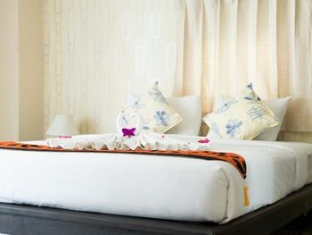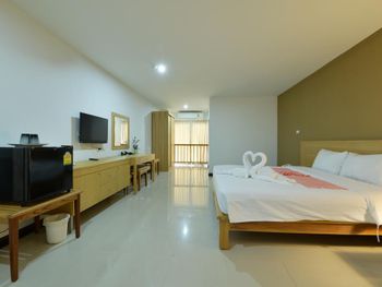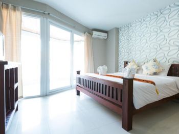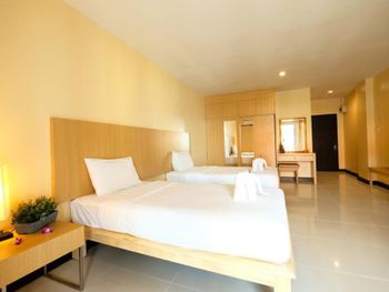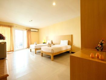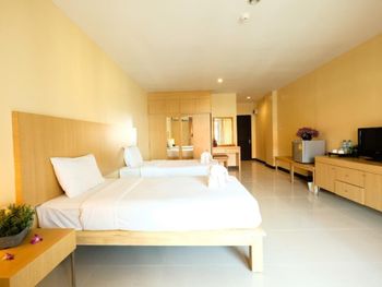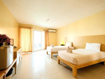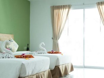 Хорошее расположение, рядом море и остановка автобуса из аэропорта, не плохой, сытный завтрак за 120 Батт, большие, светлые номера, есть телевизор, чайник, фен, сейф, каждый день две бутылки воды, кофе, кондиционер