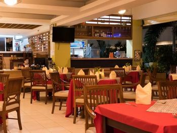 Я забронировал на сайте Booking.com номер Делюкс с двумя кроватями. По приезду в отель меня заселили в номер с одной кроватью и слово Делюкс умерло в нем ещё лет 10 назад!!! Как только мы открыли номер нас на полу ждал здоровенный таракан!!! Номер был похож на старую советскую гостиницу с ужасной старой мебелью и просто невероятно грязной, старой ванной комнатой, где по всем углам кафеля были желтые разводи и плесень. Когда мы включили кондиционер из него пошёл просто отвратительный запах плесени. Я пошёл на ресепшн с жалобами о переселении меня в номер который был у меня забронирован на сайте, они отвели меня в номер ещё хуже и сказали что других больше вариантов нет, после того как я начал возмущаться меня просто стали выгонять из гостиницы после слов что я напишу отзыв на Booking.com. Ребята не доверяйте этому сайту а тем более этой гостинице. Бассейн во дворе просто невероятно старый и грязный, я непонимаю как люди ставят хорошие отзывы этой гостинице!! Более того во дворе гостиницы есть кафе где без всяких согласований может начать долбить музыка до утра!!! Столовая в гостинице похожа на армейскую столовую. Так же в номере были старые Ванючие шторы. Днём мы пообщались с соседями и у них такие же номера, но они покупали путевку у Пегас туристик и деваться им не куда. Слава богу я забронировал 2 ночи как перевалочная станция.