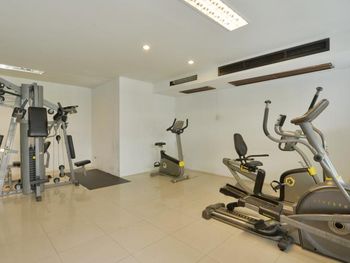 В тренажерном зале кроме гантелей и сломанной дорожки ничего нет. В общем то жить можно, но я бы поискал другие варианты в следующий раз