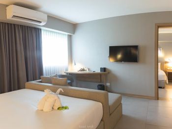 Жили в этом отеле 15 дней. Отель не 4 звезды, максимум слабая троечка. Спасает басейн на крыше. - Ужастные завтраки, это были завтраки на которые не хотелось идти! Всегда одна и таже еда, рис и макароны, которые нормальный человек не будет есть ранним утром. Не было ни сыра ни колбасы и ничего другого. Едниственное что там было это амлет и хлопья, чем собственно мы и питались все 15 дней. - В номере воняет канализацией и сыростью. На второй день в номере постоянно пахло сыростью или канализацией, я так понимаю это случается после принятия душа. Это очень сильно раздрожало. После пляжа и жары хотелось прийти в свежий номер. - В номере нет балконов. Совсем нет балконов, что не приемлимо для 4х звезд. Сами не заметили этого при бронировании. За день накапливается очень много мокрой одежды, полотенца, которые нужно сушить. Сушить их было по сути негде кроме как класть на узкий подоконник окна... - В номере не было тапок. Как мне кажется отель с 4 звездами должен был бы позаботиться о такой простой вещи. Жил в Таиланде в отелях 3 звездами, качество отеля было в разы выше!