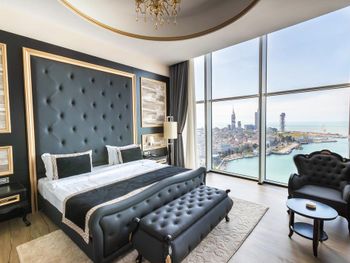 Быстрое заселение, хороший просторный номер с красивыми видами на Батуми. Завтрак. Подземный паркинг.