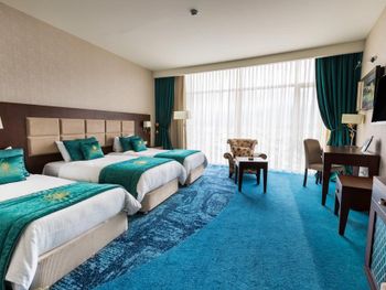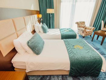 Фотографии не соответствует действительности На самом деле это старая гостиница которая поменяла имя, не смотря что мы просили убирать каждый день они даже не меняли бокалы полотенца Мы заказывали комнату на троих когда получили комнату нас ждала одна двухспальная кровать В спа хамам закрывают на платные процедуры и нельзя зайти , бассейн очень маленький и есть всего 6 лежаков нет чистых полотенец