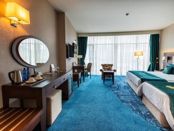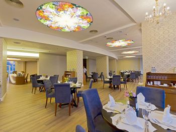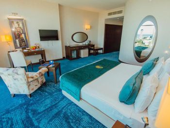 Отель тянет максимум на 3 звезды. В номере грязные окна, очень неудобные подушки. Освещение очень тусклое .Каждый день после уборки,нам приходилось менять карточку для входа в номер, т.к она не работала. После уборки у нас забирали чашки и кружки, постоянно приходилось просить,что б принесли. В последний день похолодало и мы хотели включить кондиционер на тепло ,но он работал только на холод,позвонили в рецепшн,нам сказали,что система всего отеля меняется на тепло только на следующей день. В столовой грязно и запущено ,когда много народу,то постоянно что-то не хватало,не следили и не успевали приносить . Нет хорошего кофе и нет пакетиков чая .И чай и кофе в огромных чанах . Персонал в столовой неприветливый,такое ощущение,что делают одолжение,когда их о чём то просишь. Отель старый, видно ,что запущен , требуется ремонт,в сауне запах плесени,в бассейне обшарпанные стены .