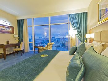 Удобное расположение, большой номер, красивые виды из окна. Возможность заказать еду в номер.