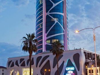 Ужасно грязные номера Много пыли, на столах капли напитков, мебель побитая, ободранные стены, окна с видом на море были полностью в грязи В раковине не уходит вода В номере постоянно дует вытяжка, которую не отключить Во всем здании крайне мало освещения, особенно в номерах На стенах и лампах напольных разводы от «затопления» В бассейне мутная вода