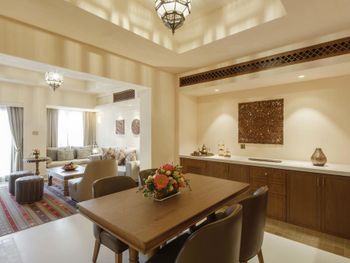 По утрам гостям Al Wathba, a Luxury Collection Desert Resort & Spa, Abu Dhabi предоставляется завтрак «шведский стол» и халяльный завтрак. При Al Wathba, a Luxury Collection Desert Resort & Spa, Abu Dhabi работает ресторан, где подают блюда американской кухни, блюда британской кухни и блюда французской кухни. Гости могут попросить приготовить вегетарианские, безлактозные и халяльные блюда.