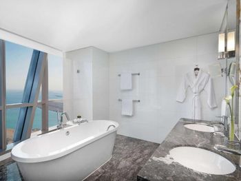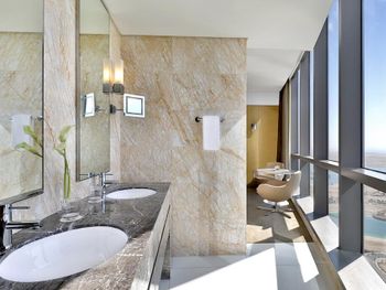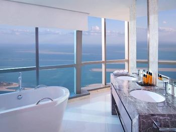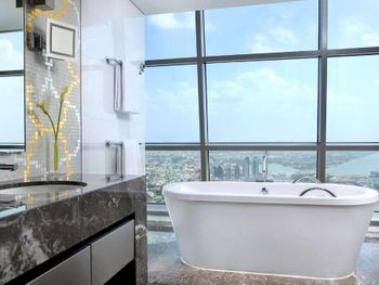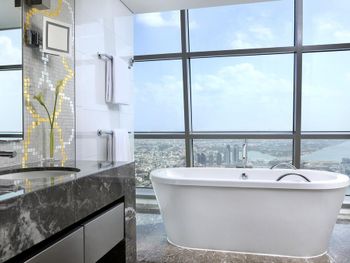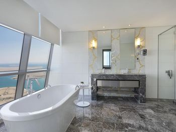 Из номеров открывается захватывающий вид на залив и Абу-Даби. Современный отель расположен в 10 минутах от Президентского дворца. К услугам гостей смотровая площадка на 75 этаже, 12 превосходных ресторанов и баров, а также спа-центр с полным спектром услуг и 13 процедурными кабинетами. Обустроено пространство для проведения мероприятий площадью более 930 кв. м. Кроме того, гости могут посетить 3 открытых бассейна и частный пляж.