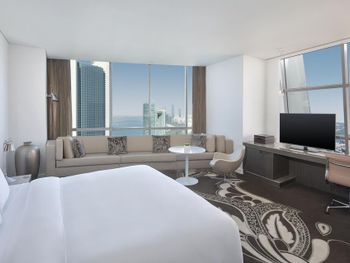 Из стильных номеров, оборудованных по последнему слову техники, открывается вид на побережье или городской пейзаж. В каждом номере имеется телевизор с плоским экраном и док-станция для iPod.