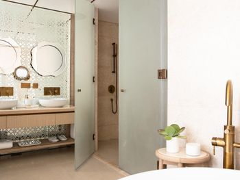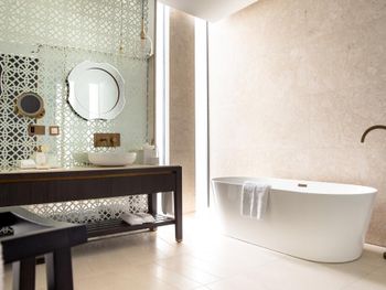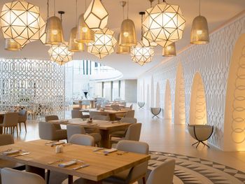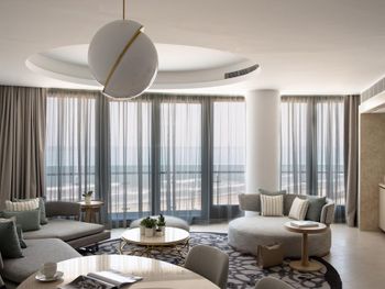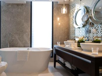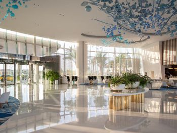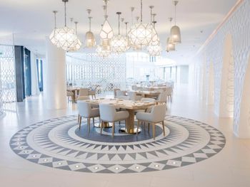 Во время нашего пребывания на территории отеля велась стройка (на сайте отеля окончание работ 30 сентября, мы заехали 26 октября), нам организовали позднее заселение, после 19 часов в наш номер, видимо, чтобы не шокировать шумными работами за окном, которые велись до 19 часов. Утром в 7 часов нас разбудил перфоратор под окнами. Стоимость номера была более 20 тыс. долларов! После длительных и настойчивых требований нас переселили в номер более низкой категории в другом крыле отеля без стройки, сделав скидку 5 тыс. дирхам. Еда нас разочаровала. Однообразный шведский стол каждый вечер, отсутствие фруктовых десертов, скромный выбор фруктов, много азиатской острой еды.