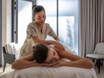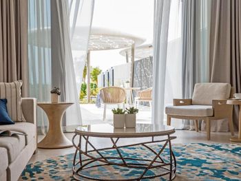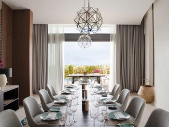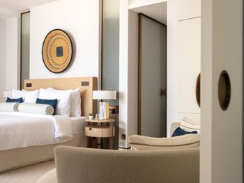 сервис в отеле такого класса отсутствовал. официанты на ланч или ужин забывали о твоём существовании час или более. принимали заказ и не приносили. на территории три ресторана и все невкусно. жаренное, жирное. на завтраках всегда приходилось ждать столик. уборка в номере происходила по звонку с просьбой убраться. отель открылся после карантинного закрытия только в сентябре и как будто не смог нормально запуститься. при полной загруженности слабость управления и плохой менеджмент были сильно видны. при выборе этого отеля вам стоит понимать что он находится в 20 минутах езды от всего.