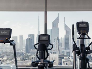 Recreational facilities at Jumeirah Living include a rooftop swimming pool, a children\'s pool and a large gym with modern equipment.