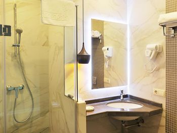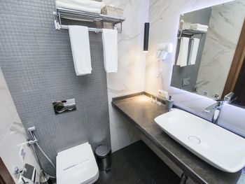 Комнаты очень маленькие. Окна не открыть, гудит улица. Кондиционер пашет как ненормальный. Или очень холодно, или душно. Стол размера с подоконник. Работать не удобно. В душе душевая кабина для очень худух. Был бы со мной мужчина, он бы там не поместился. Рядом с раковиной нет места для туалетных принадлежностей.