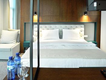 Самый большой минус- из ванной комнаты сильно пахнет запахом трапа,мы даже поменяли номер,но другая комната была та же по поводу запаха. По поводу сервиса,они хотят что бы сервис был на высшем уровне,но у них не получается. Звукоизоляция плохая. По поводу дизайна тоже видно что хотели как лучше,но там не работал проф. дизайнер это точно. Мой итог такой- отель на 3* и не больше, по этой цене можно найти другой отель лучше этого на все сто!