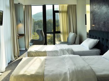 Покупали номер с двухместной кроватью, прилетели ночью, специально купили на одну ночь больше по времени. В результате нас поселили в номер с двумя одноместными кроватями. На следующий день нам пришлось собирать вещи до 12 выселяться и после 2-х заселяться в другой номер, который мы изначально и заказали и за который оплатили. Это очень странно. Плюс персонал два раза до этого когда мы спрашивали сказал что сможем переселиться в наш номер в любое время, мы пошли гулять и на улице нас догнали и сказали что выселяться надо до 12, - это забавно)