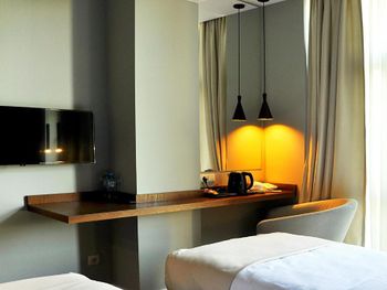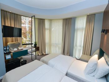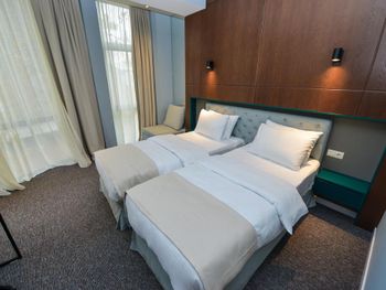 Нам предоставили номер 303 ужасно маленького размера, между креслом и кроватью вообще пройти невозможно, пришлось сдвинуть кровати вместе , чтобы просто иметь возможность пройти. На стенах номера отпечатки ботинок и полосы какие-то, их даже не попробовали смыть! Везде пыль, а в ванной комнате ужасающий запах канализации или старых труб, корзинка с гелем и шампунем внизу вся в чьих-то волосах! Кондиционер работает настолько шумно, что разговаривать тяжело, от закрытых окон дует, простыли после первой же ночи! Wi-fi работает отвратительно, невозможно пользоваться интернетом! Завтраки невкусные, даже кофе после нескольких чашек закончился, на просьбу решить проблему проучили отказ , так как зёрен нет, как такое может быть в отеле 4 звёзды ??? Если приходишь на завтрак попозже, то тебе даже серого омлета не достанется! Я бы вообще убрала звёзды у этого отеля!