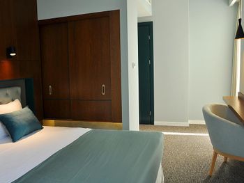 Просторный и комфортный номер, у нас был угловой, что тоже плюс. Отличные плоские подушки, для меня это важно. Хорошая шумоизоляция-соседей мы не слышали вообще.
