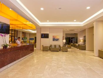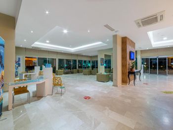 Отель 4*, но никак не 5*. Выбор еды совершенно небольшой, фреш, мороженное все платное. По питанию совсем ничего хорошего сказать не могу, покушать есть что, но не густо. Даже выпечка подогретая, с каких то коробок доставали и в жарочных шкафах грели, ну это уже совсем. Пироженные, торты без фанатизма одно и тоже. Часы приема пищи короткие и люди как сумашедшие летят в ресторан, обед с 12-30 до 14-00 это нормально? В это же время типа бесплатное мороженное, но не раз не дали бесплатно. Гезлеме совершенно ни то, которым славится Турция, обычно сидит женщина и на твоих глазах его делает, с пылу с жару ты кушаешь. Смены белья так и не дождались, как раньше зуб.пасты нет, гель для душа он же и шампунь, залитый в общую емкость. Вход в море ужасный, первые дни оставались без ног. Интернет платный в 21 веке то, все уважающие себя отели в лобби делают интернет бесплатный, но тут в конференц зале где то в подземелье, где он совсем никакой. Карточку в номер на 4-х дают одну, ужасно не удобно. Полотенца в залог, чайник, утюг в залог, зачем???? Зачем людям на отдыхе создавать такую бумажную суету????? Больше бы мне не хотелось туда вернуться.