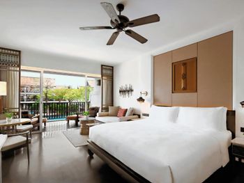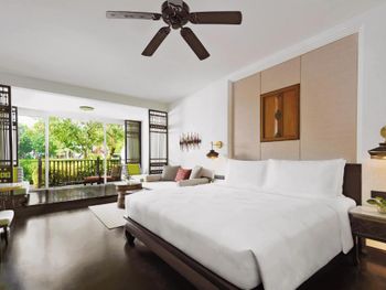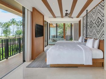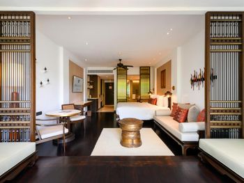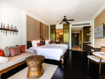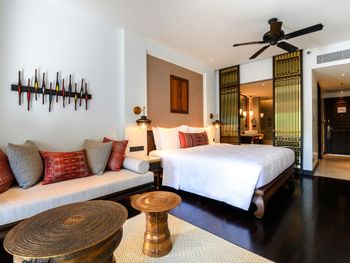 В просторных номерах курортного отеля JW Marriott Khao Lak с большими окнами имеется отдельная гостиная зона и собственный балкон. Все номера оснащены ЖК-телевизором.