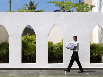 Прекрасный отель для спокойного и размеренного отдыха. Огромная, живописная и очень ухоженная территория отеля просто обволакивает и создает ощущение, что ты находишься в тропическом раю. Отель действительно большой, по фотографиям этого не понять, но он занимает около 20 га земли + есть еще сад, который по сути является частью облагороженных джунглей, в которых проложена беговая дорожка длиной 1,5 км и находится павильон для йоги и контактный зоопарк. Номера большие, удобные шкафы, много вешалок и полок. Матрасы и подушки, как и во всех марриотах превосходные, Большие балконы, хорошая косметика - все это есть. Весь отель поделен на взрослую зону (+12 лет) и зону для отдыха с детьми. Такой подход очень удобен, так как дает вам возможность отдохнуть в тишине, если вам не нравятся крики и игры детей. Даже на завтраке вы можете воспользоваться отдельным залом и террасой для adults only. Что касается еды, то мы брали полный пансион. Завтрак отличный: свежевыжатый соки, много фруктов, бар с азиатской кухней и такой же с индийской кухней, прекрасная выпечка, овощи, малосольная рыба, хороший кофе - вы точно останетесь довольны. На обеды и ужины нам выдали ваучеры, с ними вы приходите в любые рестораны алякарт за исключением рыбного ресторана. По этому ваучеру На обед из меню можно заказать 1 блюдо, на ужин 1 закуску или салат + 1 основное блюдо + десерт. Напитки в ваучер не входят, из оплачиваешь дополнительно. Также некоторые блюда из меню нуждаются в доплате. Рестораны все вкусные, порции большие, готовят отлично. Мы за 4 дня пребывания не захотели выходить куда-то в другое место из отеля. У нас были приветственные ваучеры на посещение спа. Сам спа очень красивый и обволакивающий, отличная территория, персонал на ресепшен очень обходительный, но вот сам массаж был крайне посредственный. Мы часто ходим на массаж с супругой и я могу с уверенностью сказать, что им надо менять специалистов.