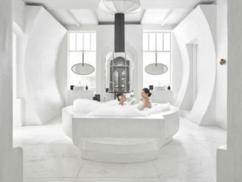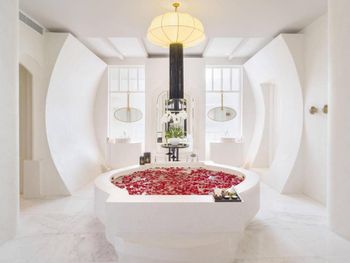 Красивый стилизованный отель, хочется гулять по территории и рассматривать детали. Сюда стоит ехать тем, для кого важен дизайн, белый пляж и отдых в отдалении от шумной центральной деревушки.