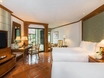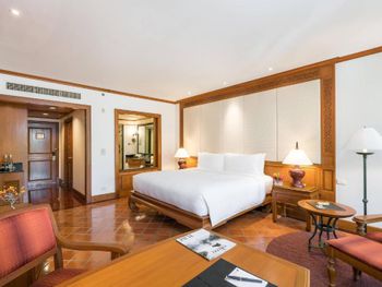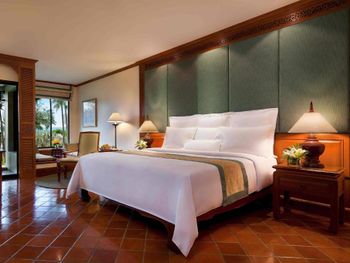 Просторные звукоизолированные номера и люксы располагают собственными балконами или террасами с видом на сад, бассейн или океан. Элегантный интерьер, отделка высококачественным тайским шелком от Jim Thompson. В числе удобств — телевизор с плоским экраном, мини-бар, принадлежности для чая/кофе и круглосуточная доставка еды и напитков в номер.
