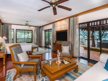 1. Номер темноват, но очень интересный и просторный. Особенно зона с лежаками у окна. Красивая ванна, много мелочей доя удобств. 2. Красивая зелёная территория, пруд с лотосами😍 3. Полотенца на лежаках - не надо с собой носить. 4. Профессиональный и вежливый чек ин и чек аут. 5. Черепашки, активити для детей, напитки, бананы для детей. 6. Самый крутой завтрак, что я встречала на Пхукете. 7. Много разнообразных ресторанов на территории, но дороговаты.