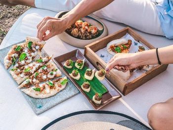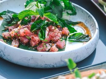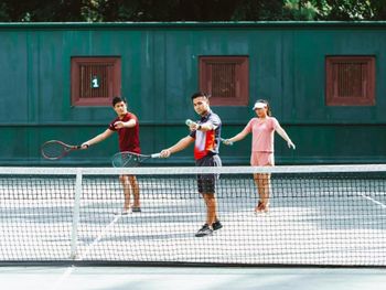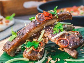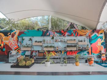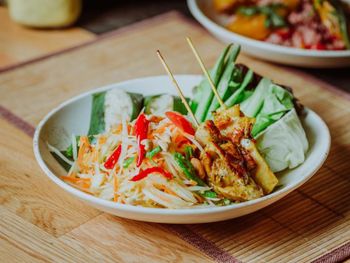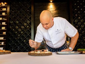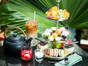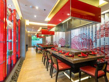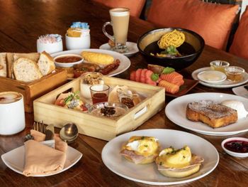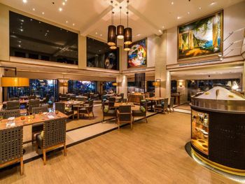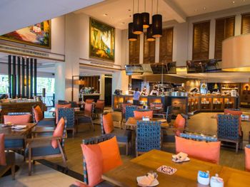 В кафе Marriott сервируют завтрак «шведский стол» и подают блюда интернациональной кухни в течение всего дня. Кафе Siam Deli специализируется на изысканных сэндвичах и сладкой выпечке. Кроме того, в отеле открыты рестораны тайской, японской и итальянской кухни, а также стейкхаус. У каждого бассейна открыт бар с прохладительными напитками.