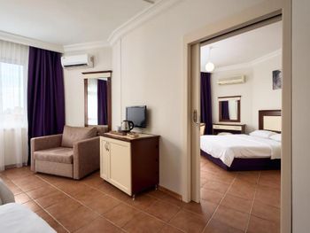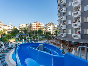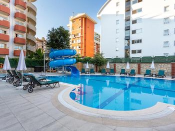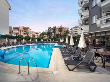 Хорошее местоположение, рядом торговая улица, где есть аптеки, кафе, обменники, базарные лавки по не завышенным ценам, за 20 мин можно дойти до ТЦ Аланиум, рядом есть небольшой супермаркет А101 и мини Карафур. Остановка автобуса на набережной рядом. Море пляж через дорогу, пляж 36, лежаков много. Ненавязчивый персонал, качество еды хорошее, алкоголь настоящий не разбавленный. Отель не новый, хотелось бы реновации интерьера и комнат. Но в целом все исправно работало.