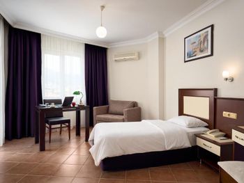 Мне всё понравилось. Уютный отель, удобный чистый номер с просторной душевой кабиной. Вид из номера соответствовал карточке бронирования - на море, а с балкона вправо - на город и горы. На мой взгляд -самый удачный вариант, т.к. на внутренний двор с бассейном мне бы не хотелось. Я заехала во второй половине октября, и у меня были еще "свободные" даты и неопределенность с жильем. Увидев свой номер, я решила больше ничего не смотреть, и продлила пребывание здесь. Отель не в центре, зато нет толп народа, до моря через 3 минуты, длинная прибрежная прогулочная (и + велосипедная) дорожка вдоль моря. Автобусная остановка совсем рядом. Напротив отеля был прокат велосипедов. Еда разнообразная, по вечерам барбекю. Завтраки на любой вкус - от мюсли/джемы до более плотных, и тут же (на улице) всегда жарили еще горячую яичницу и омлет. Вкусные шанежки на завтрак и пирожные по вечерам. Вечерних развлечений было не много, но я за день сама ухаживалась, мне и без развлечений было норм. На ресепшн всегда есть русскоговорящий персонал, девушки отзывчивые, всегда помогали и объясняли, если что было нужно.