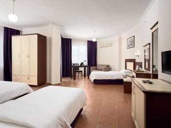 Понравилось все. Местоположение, рядом есть все. Персонал всегда готовый помочь, убираются каждый день и меняют постельное белье, полотенца, и на пляж каждый день дают свежие чистые полотенца. В комнате чайник, кофе, чай, каждый день оставляют бутылки воды. Пляж 5 минут ходьбы, до центра на автобусе 10 минут. Можно прогуляться пешком по набережной. Вкусно готовят.
