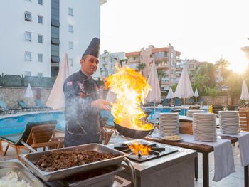 Прекрасное место расположения - вторая линия, в двух шагах от моря, рядом магазины, аптеки, банкоматы, кафе. Отличная еда, можно рекомендовать систему - «все включено», каждый вечер что-то готовят на гриле, все вкусно. Свой пляж, до которого нужно немного прогуляться. Некоторые сотрудники отеля говорят по-русски, с готовностью решают все возникающие проблемы. Мне все понравилось, спасибо!