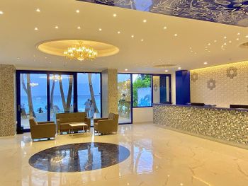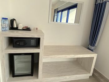 Отель не предоставляет халат , тапки. В номере нет телефона что бы связаться с ресепшн. Пляж безумно людный и не оборудован душем . На завтраках нормальный только омлет .