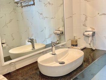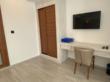 1, Бассейн не работал, а в то время когда работал купаться в нем не возникло желания, на этаже идёт стройка, нет даже туалета, нет заграждения нормального, так что находиться на территории бассейна не безопасно, всего два лежака и более ничего 2, Полотенца в номерах грязно серого цвета, совсем не белого, как предполагалось, 3, туалетные принадлежности типа мыло и паста не пополняются ежедневно, нужно просить, 4, Завтраки и ужины слабые, еда вроде бы есть, но она не вкусная , какие то странные сочетания в блюдах, например бутерброд с маслом и сверху арбуз или долька апельсина, смотрится конечно не плохо, ярко, но как это есть, вопрос, 5, Чай и кофе невозможно налить самим, надо просить и ждать, когда его принесут, это очень не удобно, 6, по пятницам и субботам устраивают дискотеки прям под окнами до 23 часов, так что если возникнет желание отдохнуть, то это нужно либо уходить из номера, либо ждать 23 часов, На обед как то заказали том ям в ресторане отеля, ну просто разочаровались,