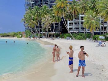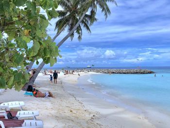 На пляже очень много лежаков и зонтиков. Всегда можно заказать еду и напитки, что мы и делали. Вода около пляжа немного мутная. Мы видели много мест на Мальдивах, где вода гораздо чище и красивее. Рыбок нет. Делать на острове нечего. Но если вы хотите заняться дайвингом или снорклингом, то агенств, предлагающих эти услуги предостаточно. Из развлечений: катание на гидроцикле(20-30$), машинке(40-80$), парашюте, подушке и т.п. Везде снимают с дрона и потом можно скачать видео.