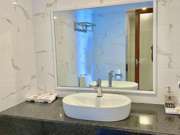 Отделка номера отличная. На этом все. Единственный плюс, что меня быстро заселили при смене номера (бронь была из двух частей). Была в шоке, как это они справились, по прошедшим 5 дням я была уверена, что они на это неспособны. Еда обычная, не стоит этих денег.