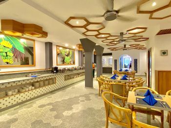 Персонал отвратительный, высокомерный. Все нужно выбивать с боем и скандалом!С виду улыбаются и кивают тебе, но в итоге делают как им угодно. Просиди больше плечиков для одежды, отказывались предоставлять, объясняя это тем, что такая политика отеля (4 вешалки на номер для двоих взрослых). Кухня ужасная, вся на индийский мотив, для славян никак не подходит. Говядина жёсткая, этот карри во все блюда пихают. Пляж - оставляет желать лучшего, камни, вход плохой в воду, не глубоко. Ноги можно поранить. Алкоголя на острове нет вообще. Объяснили это тем что нет лицензии. Под конец уикенда старались вести себя нормально. При бронировании был заявлен бесплатный трансфер. По итогу на остров привезли нас, но обратно в аэропорт пришлось заказывать индивидуальный трансфер за 110$, так как последняя лодка уходит в 17:00, а наш рейс был в 23:30. Если хотите хорошо отдохнуть на Мальдивах берите Резорт от 50 тыс.руб за сутки. Вообщем вернуться в этот отель желания нет. Единственное что радовало - это море красивое и теплая погода.