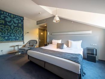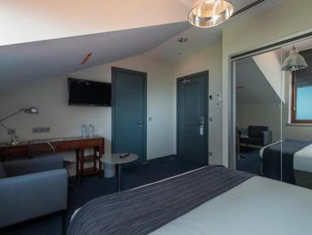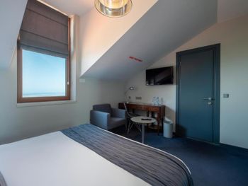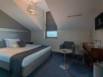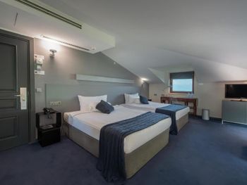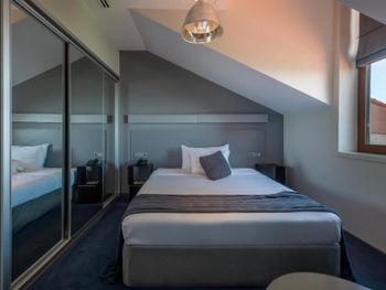 Очень душно в номере, кондиционер шумный, но все равно не справляется. В мансардном номере очень темно, в ванной вся вода от душа течет на пол. Отель на основной улице - ночью все время кто-то ездит.