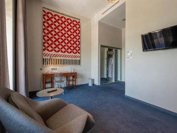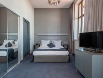 Думаю, один из лучших отелей в регионе. Хорошие континентальные завтраки с божественным видом на Алазанскую долину. С таким же отличным видом бассейн и тренажерный зал. Локация отеля центральная: в любую сторону города без проблем добраться можно как пешком, так и на авто. Чисто. Есть места, где можно освежить ремонт, но не критично
