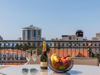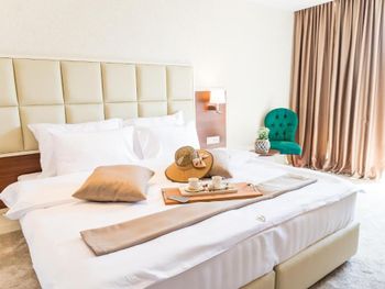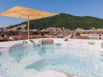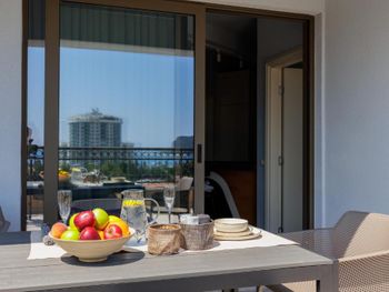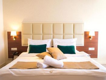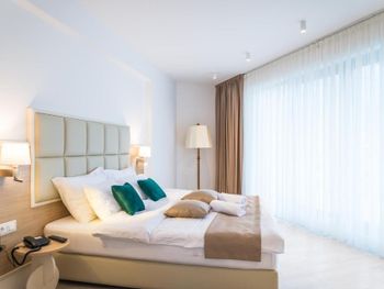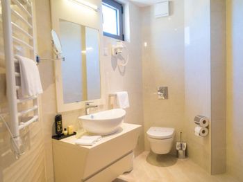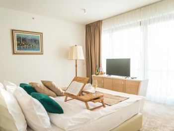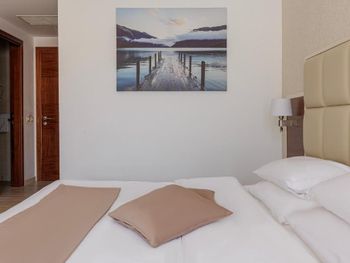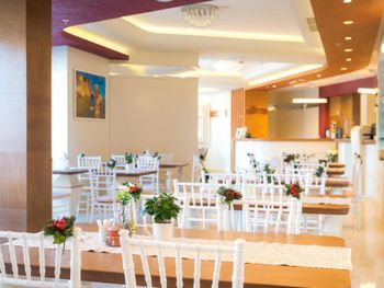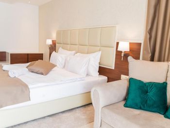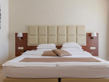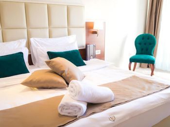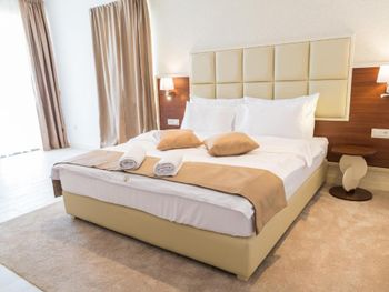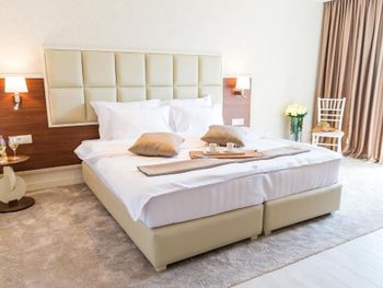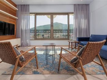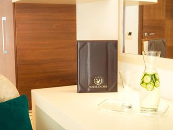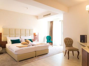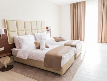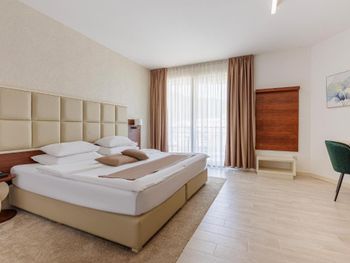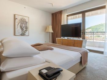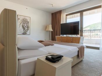 Гостиница,безусловно,ухоженная,хорошая,разнообразная кухня,приятный персонал. Большой комфортный балкон с видом на горы и город. На нем кроме кресел и столика помещаются даже два жезлонга,можно загорать прямо на балконе. Тихо и уютно.