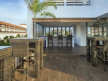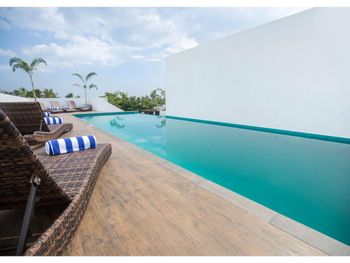 не самый удачный вариант для тех кто любит отдых у бассейна: бассейн очень мелкий, всего метр глубиной, и такое впечатление что за ним особо не следят, по углам там плесень и грязь. бар там тоже почему-то не работает, то есть даже за водой придётся идти в номер/ресторан.