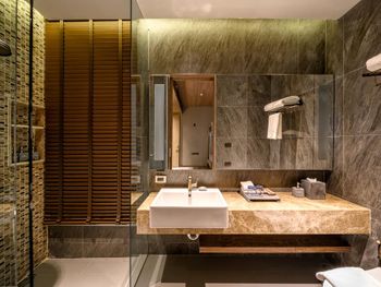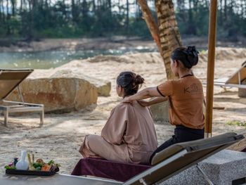 Отель позиционирует себя как 5 звёзд, что очень спорно, так как: Персонал - вроде бы приветливый, но по-английски понимает очень плохо, почти также говорит. Рестораны отеля - цены высокие, еда невкусная, заказали пиццу, по вкусу - замороженная из ближайшего супермаркета. По цене - 400 бат, за такую цену ожидаешь получить свежие морепродукты и хрустящее тесто. Расположение - неудобное, при этом шаттлы отеля работают в неудобное время. Завтраки - нормальные, но не уровня отеля 5 звёзд. Нет свежевыжатых соков, ограниченный ассортимент фруктов. Нормальный пляж у отеля отсутствует, лежаков нет. Что больше всего вызвало беспокойство - не продумана безопасность мест общего пользования, будь то пляжный ресторан или например, бассейн. Территория освещена плохо, много разных ступенек, дыр, где можно запросто разбиться. Если отдыхаете с ребёнком, за ним нужен глаз да глаз. В общем, чудесный отель 3+ или 4 звезды, но никак не 5. Красивая картинка, которая не стоит своих денег.